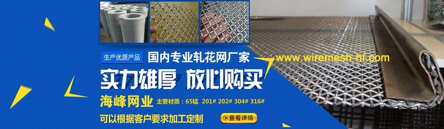 - 安平縣海峰金屬網(wǎng)業(yè)有限公司 安平縣海峰金屬網(wǎng)業(yè)有限公司位于中國(guó)著名的“絲網(wǎng)之鄉(xiāng)”——河北省安平縣,是具有拉絲織網(wǎng)、焊接、剪裁、噴塑、浸塑成品等一整套生產(chǎn)工藝的專業(yè)化廠家。本公司經(jīng)過多年來的順勢(shì)發(fā)展,現(xiàn)已擁有廣闊的生產(chǎn)廠房和優(yōu)良的辦公環(huán)境,占地8500平方米,在廠職工100余人。擁有高深的技術(shù)人員,高端的生產(chǎn)設(shè)備,全自動(dòng)的機(jī)械化生產(chǎn)流水線,站在了軋花網(wǎng)、石籠網(wǎng)同行業(yè)的頂端。 查看更多>>
